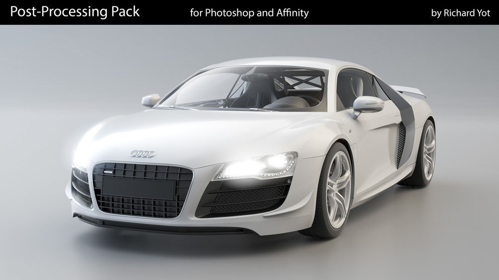 The Post-Processing Kit is designed to speed up your workflow and is based on the concepts and techniques shown in my Post-Processing For Photorealism tutorial. The kit makes all of those techniques accessible at the click of a button, wrapping these sometimes complex operations into a simple action, cutting your post-processing time down drastically.